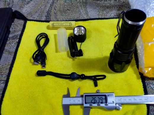 Доставка супер, все целое. С фонариком поставляется переходник на 18650? но аккум в нем болтается. Есть так же кассета под 3 батарейки типа ААА, но какой смысл при мощности 18вт? Итого, на аккумуляторе 26650 все супер, работает отлично, яркий, качественная покраска и изготовление корпуса. Технически оснащен тоже круто, есть встроенная защита от перезаряда и переразряда акб. Продолжает работать при подключении к зарядке. При включении - турборежим 18Вт, держится 70 сек, затем в течении 2 мин плавно снижается до 4 Вт. (4 очень мало, он даже не греется когда долго работает, оставили бы хотябы 8. при том что возможность понизить режим остается даже при 4 Вт.