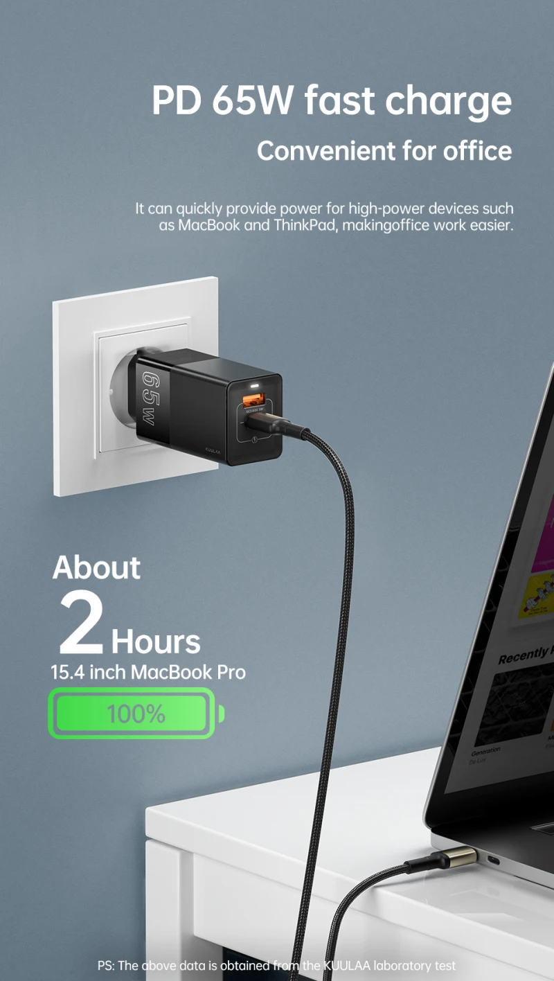Он может быстро поставляет питание для высокопроизводительных устройств, таких как MacBook и ThinkPad, делая офисные легче около 2 часов 15,4 дюймов MacBook Pro