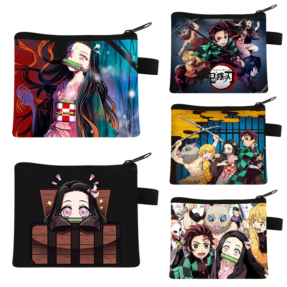 Кошелек для монет из аниме клинок демонов, портативный милый маленький бумажник из полиэстера с кармашком для мелочи, детский подарок
