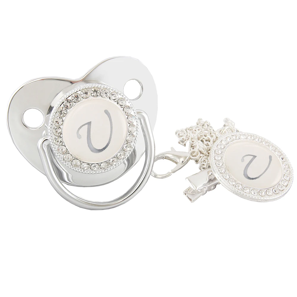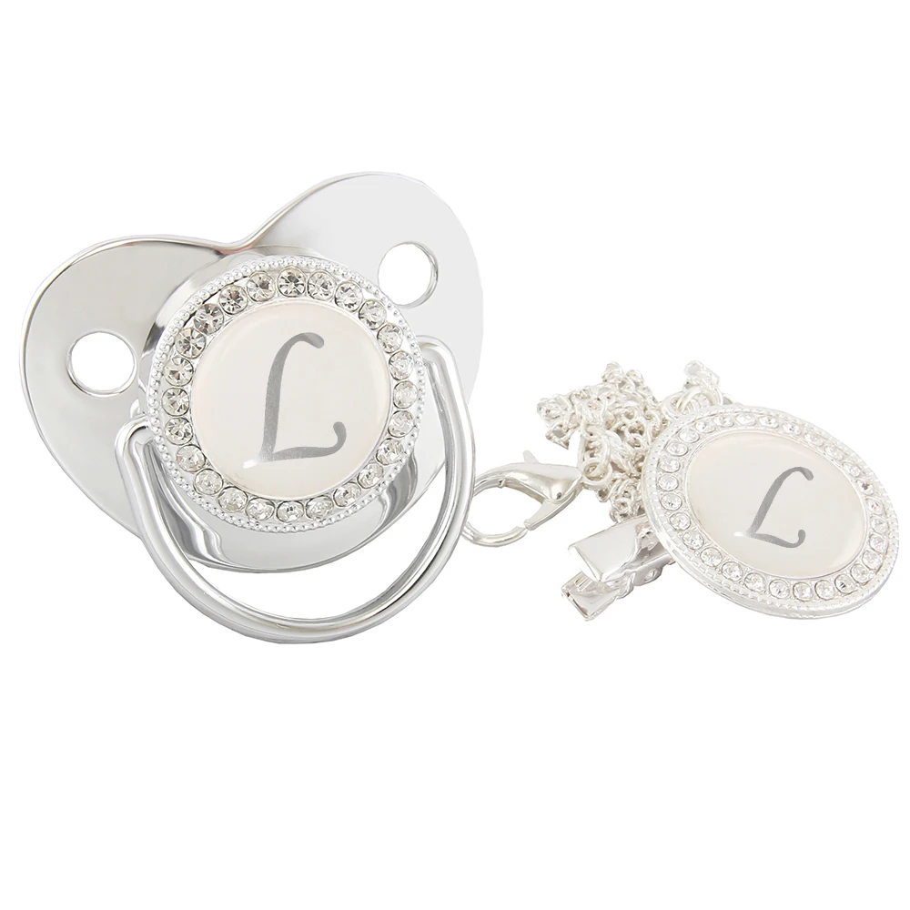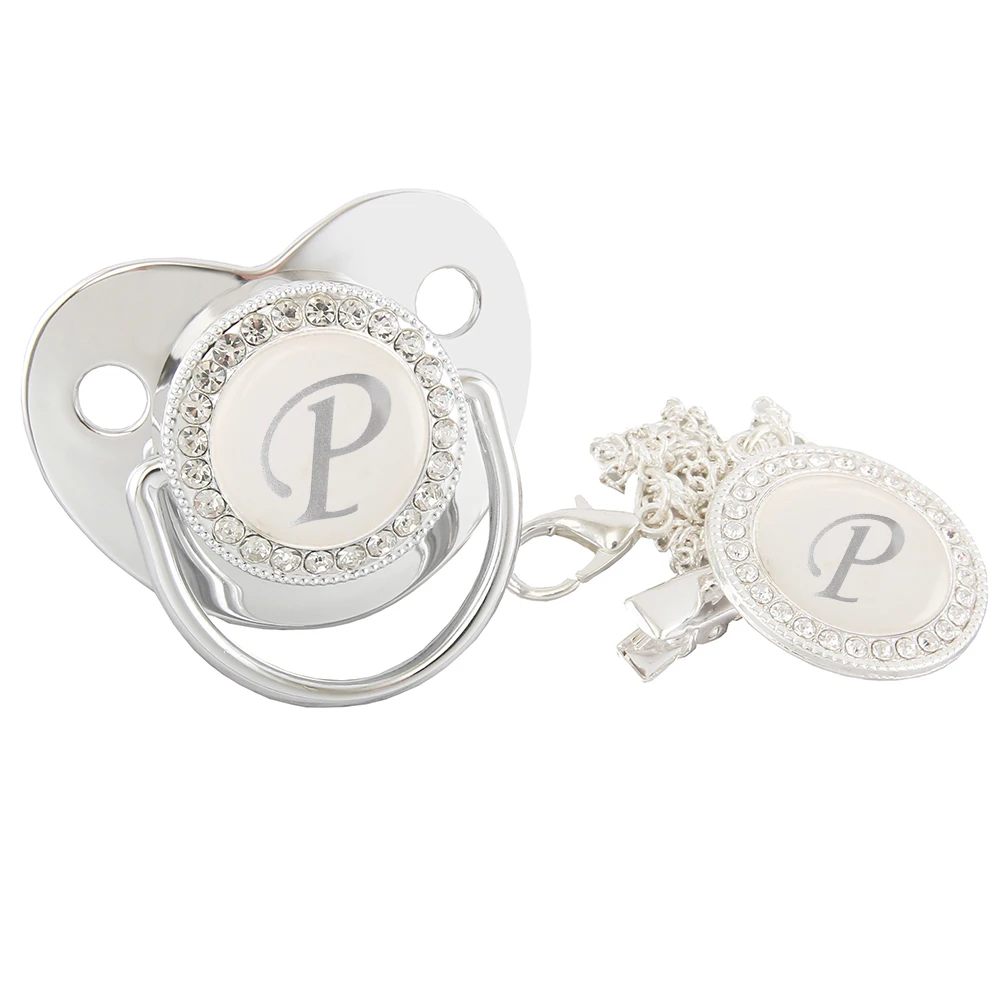 26 наименование инициала письмо Роскошные серебряные детские соски-пустышки без бисфенола А силиконовые детские аксессуары соска для новорожденных Прямая поставка