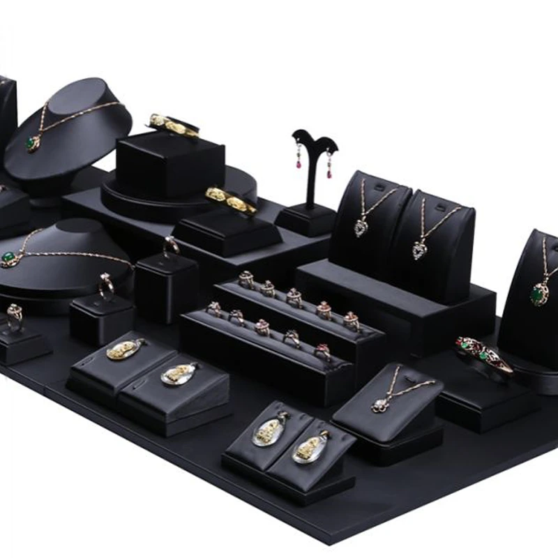 Роскошный черный держатель для колец из искусственной кожи, стойка для стоек, стойка для ювелирных изделий, стойка-органайзер для витрин в лавочном магазине