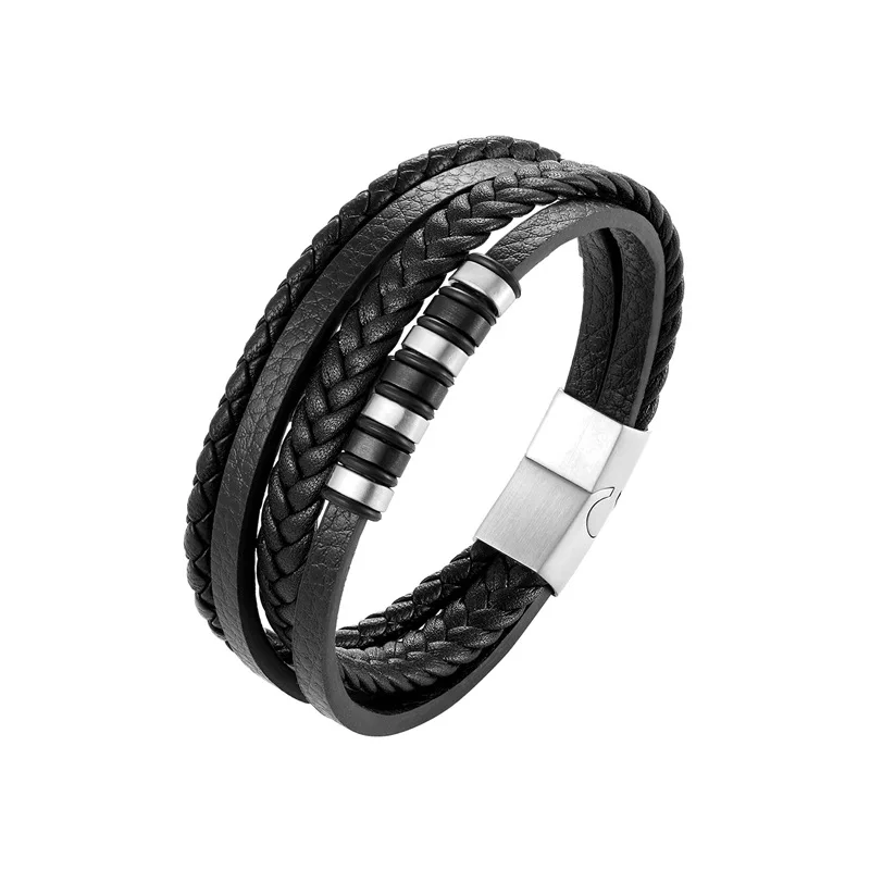 Многослойный Плетеный Кожаный браслет для мужчин, веревочная цепочк...