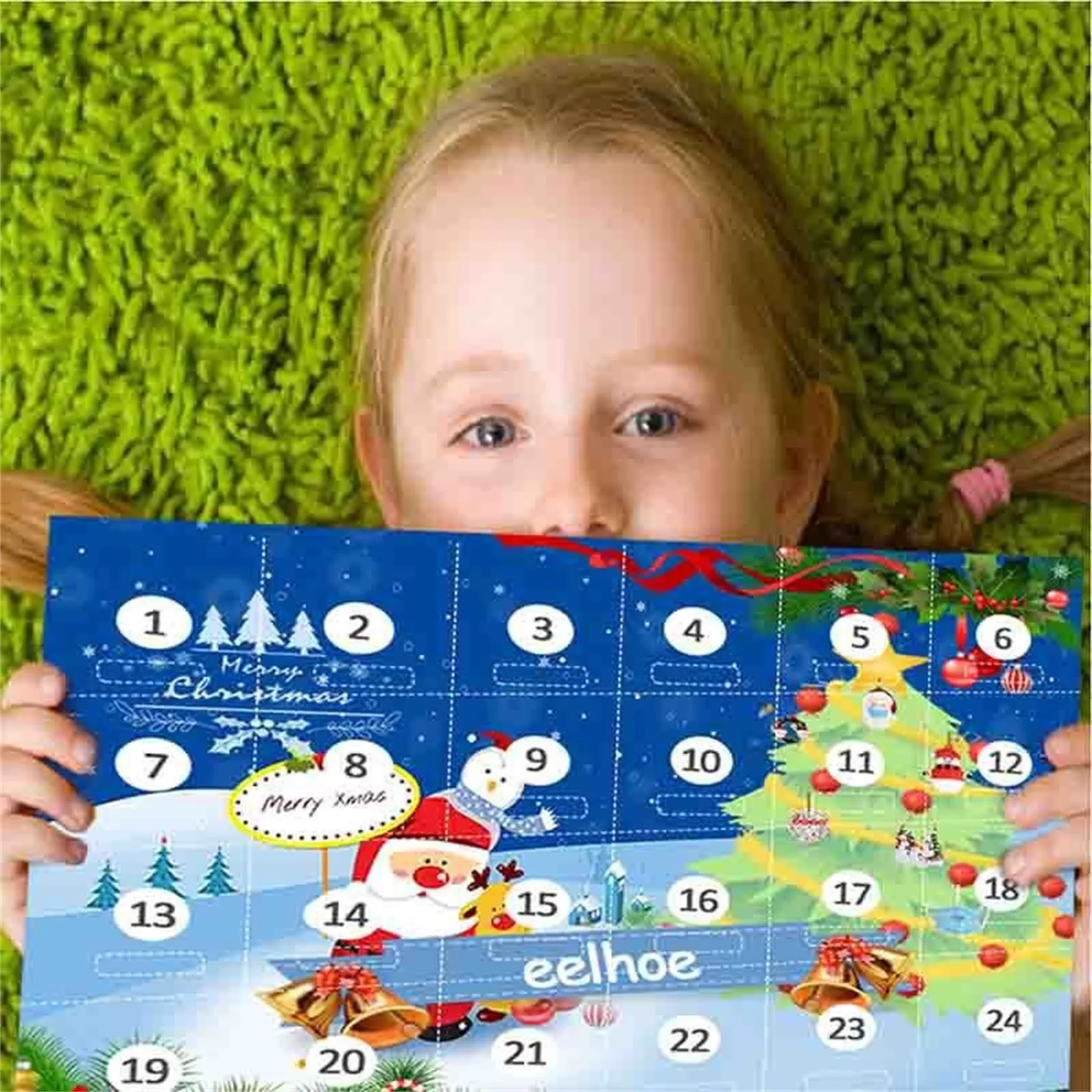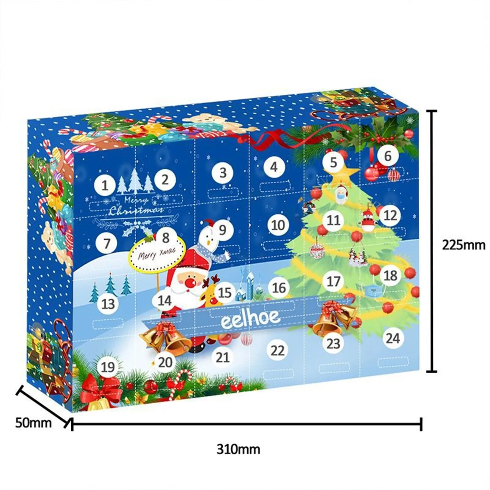 2021 Рождественский календарь, 24-дневный сюрприз игрушка оптом Рождественский праздничный календарь обратного отсчета, с 24 маленькими дверцами