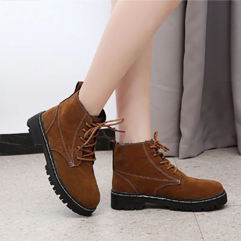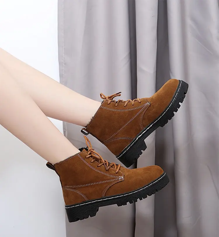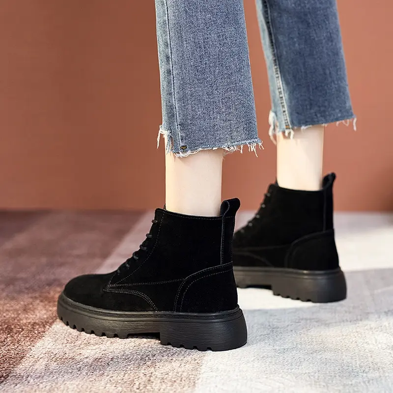 QUTAA2022 г. Ботильоны женские Замшевые полусапожки на плоской плат...