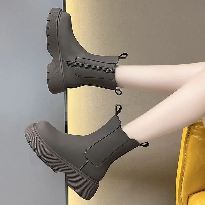Ботинки-челси женские осенне-зимние, без застежек, на платформе