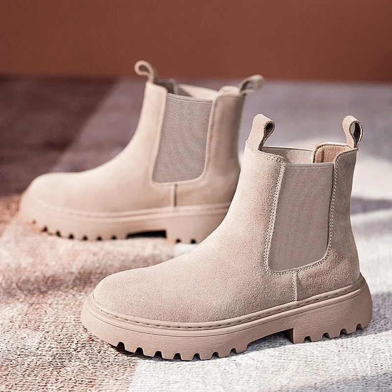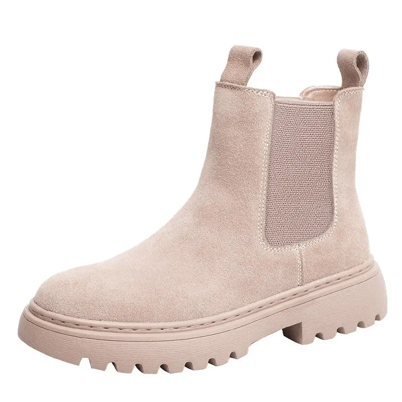 Ботинки-челси женские замшевые осенние на платформе, без застежек