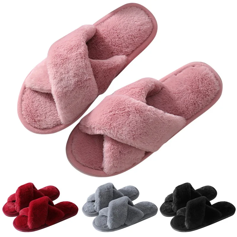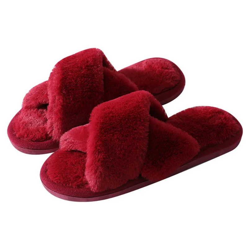 Женские меховые тапочки, зимняя одежда, Нескользящие домашние тапоч...