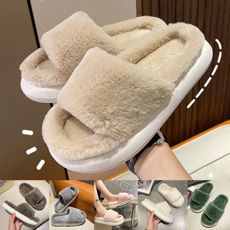 Зимние женские тапочки с толстым дном, меховые тапочки для дома, мягкая обувь на платформе, домашние теплые хлопковые тапочки, 2021