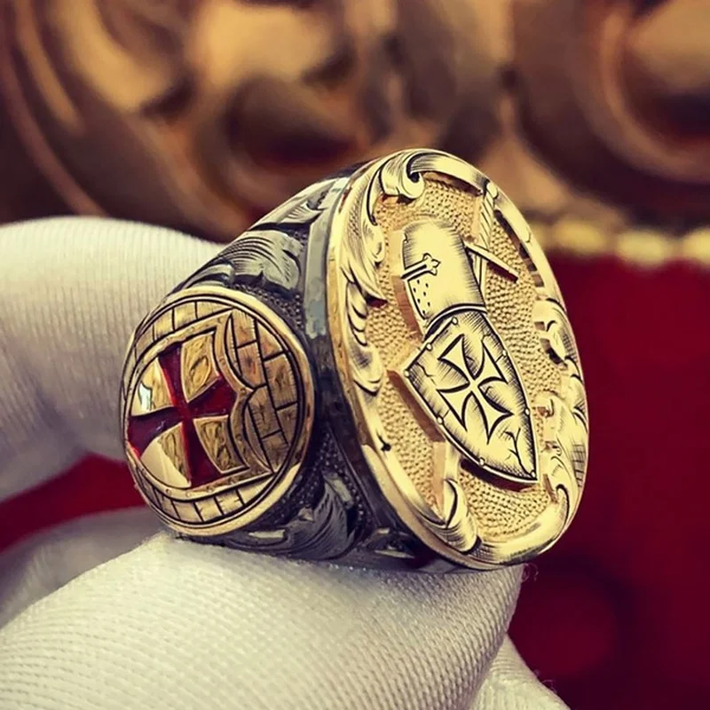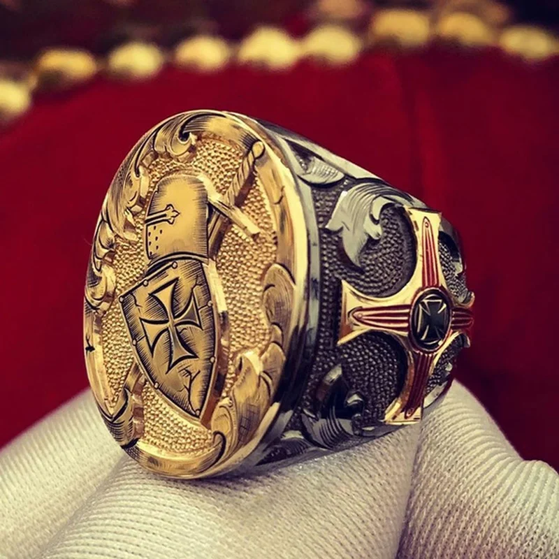 Мужское модное резное кольцо рыцарь крестомер Иисус Бог Крест эмали...