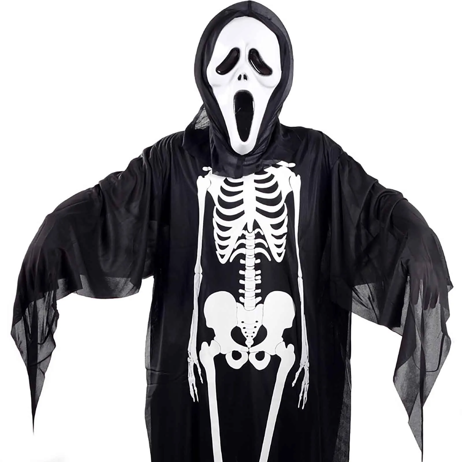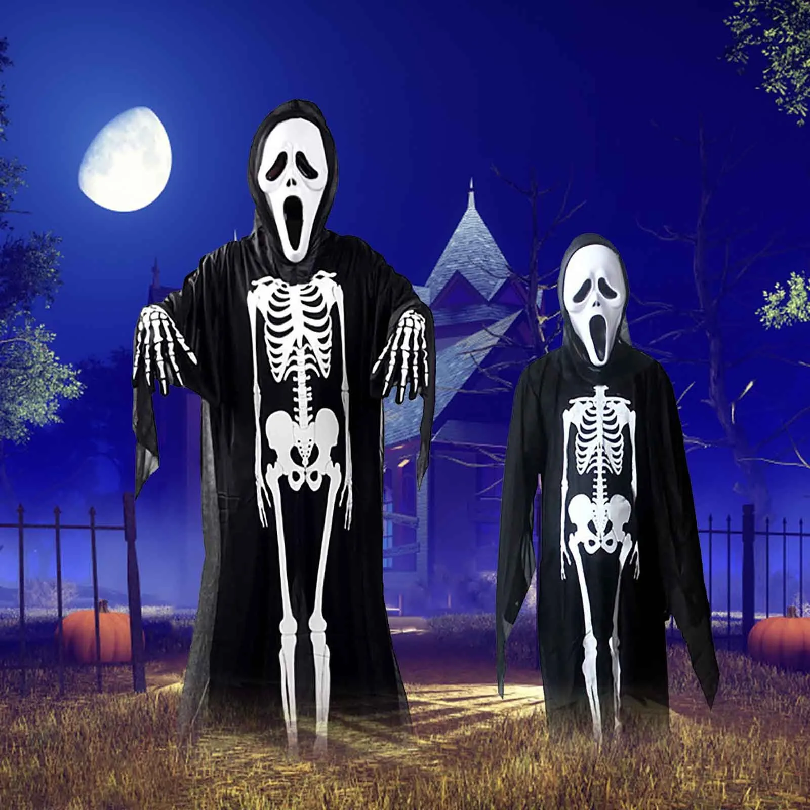 Костюм для косплея на Хэллоуин с черепом и костями, Детский комплект для взрослых, маска-призрак, чехол для лица ужаса для мальчиков (комплект для родителей и детей)