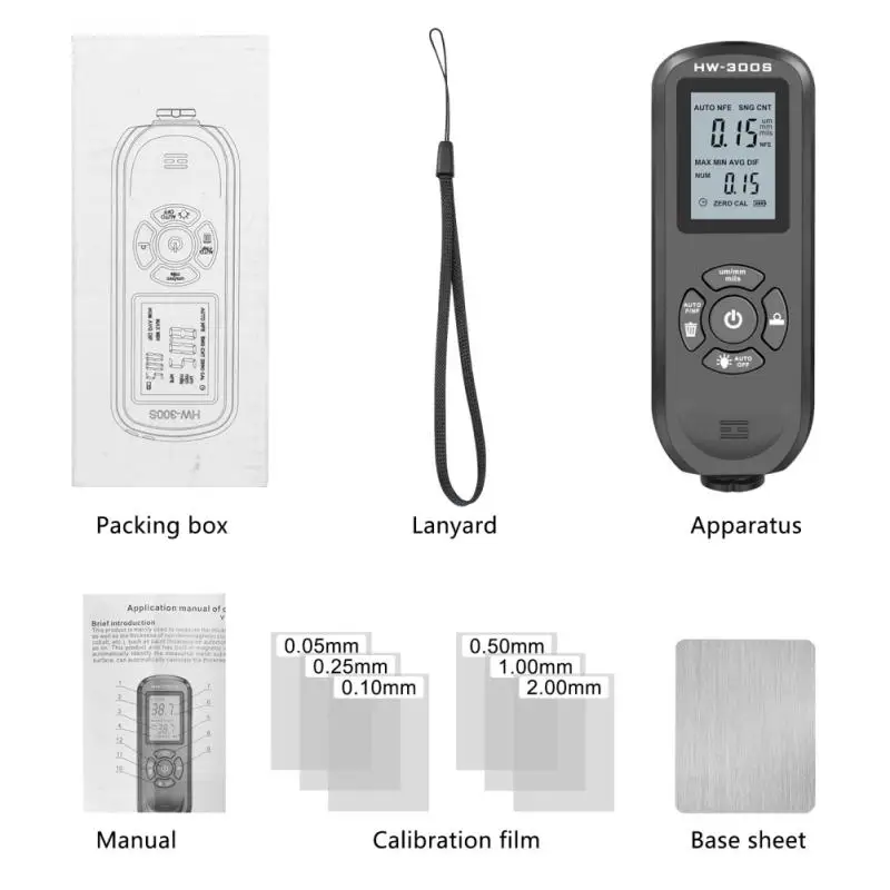 1. Толщиномер используется для измерения толщины покрытого и покрытого листа на металле, например, краска/эмаль/хром на стали, краска и анодированное покрытие на алюминии/меди.