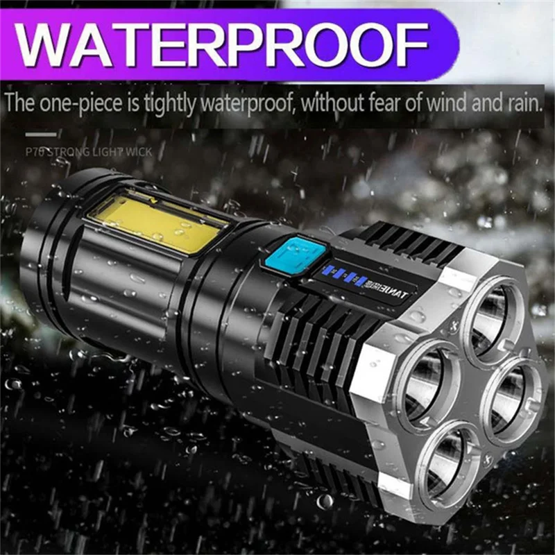 4-ядерный мощный яркий фонасветильник, перезаряжаемый наружный Мног...