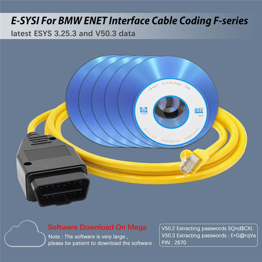 Кабель E-SYS ENET для BMW серии F ICOM OBD2, диагностический кабель Ethernet для ESYS Data OBDII, скрытые инструменты для кодирования данных, диагностика автомобиля