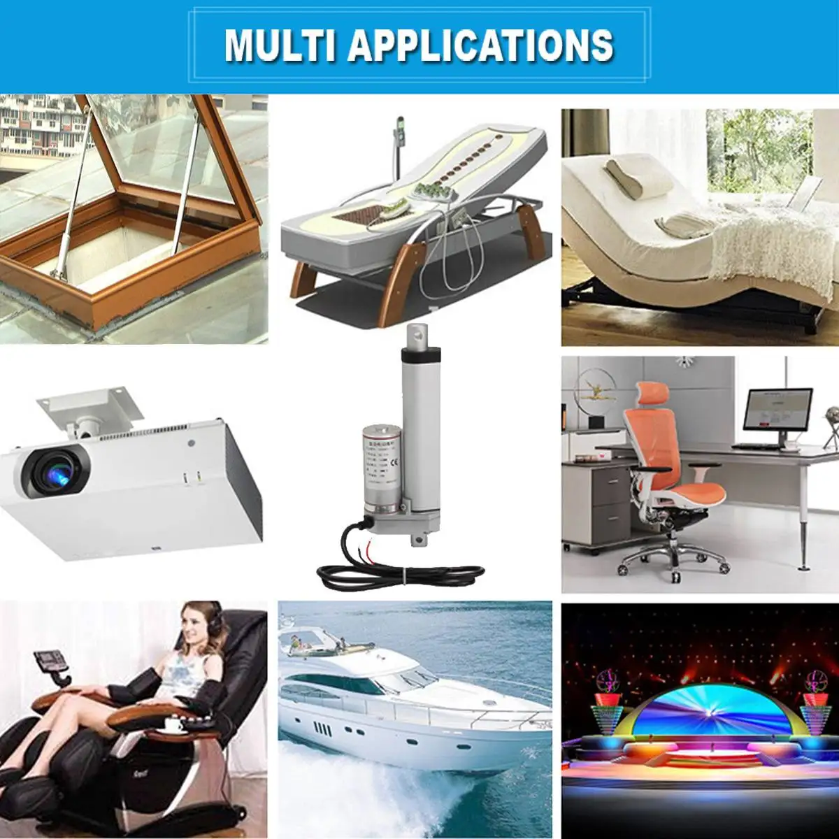 Длина хода:50 мм/2 дюйма100 мм/4 дюйма200 мм/8 дюймов300 мм/12 дюймов400 мм/16 дюймов500 мм/20 дюймовРабочий цикл: 10%Технические параметры:Номинальная мощность: 20 Вт, максимум 30 Вт.Нажимная планка с каждой стороны содержит ограничительный переключатель перемещения. Когда телескопическая планка бежит к верхней или верхней части, она автоматически отключит электричество.Двигатель не пропустит. Отключите питание, его можно остановить в любом положении, с функцией самоблокировки.Толкатель управляется двигателем постоянного тока с винтовым приводом. Телескопический стержень может быть вытянут только без вращения.Мотор положительный и отрицательный. Например, если положительный электрод растягивается и отрицательный электрод уменьшается, телескопическое направление стержня может быть изменено путем его изменения.Температура окружающей среды-20 °C до + 75 °C.Стандартный Класс защиты: IP54.Низкий уровень шума, уровень шума менее 42 дБ.Пожалуйста, не разбирайте устройство.Характеристики продукта: Управляйте другими объектами, чтобы нажимать, тянуть, поднимать, опускать.Применение продукта: ТВ Подъемные столы, массажные кровати, электрические кровати, медицинские кресла, электрическое оборудование, микро-устройства, электрические диваны, рамки камеры, камеры и многое другое.Размер установки:(1): расстояние между двумя монтажными отверстиями до и после полного втягивания толкателя, расстояние крепления толкателя(То есть, длина самого толкателя).Ниже 300 мм ход L (размеры крепления) = 105 мм + S (ход)300 мм и 300 мм выше путешествия L (размеры крепления) = 155 мм + S (путешествия)(2): расстояние в центре между двумя монтажными отверстиями до и после полного расширения толкателя.(Ниже 300 мм ход) = 105 мм + S (ход)(300 мм и 300 мм штрихи или более) = 155 мм + S (ход).