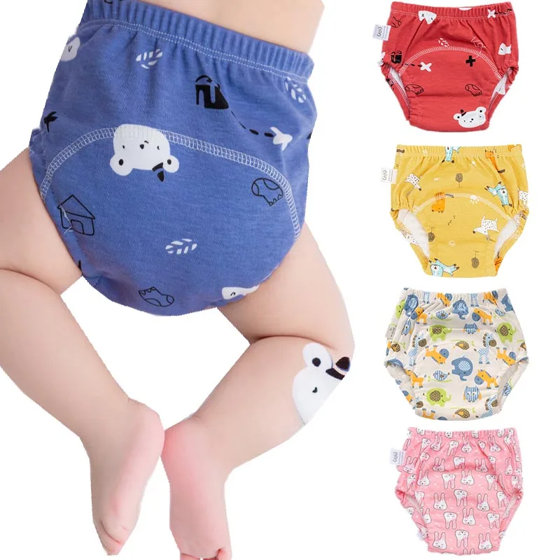 Тренировочные штаны для новорожденных с мультяшным рисунком, летние детские шорты, моющиеся тканевые подгузники с милым рисунком для мальчиков и девочек, многоразовые подгузники, трусики для младенцев