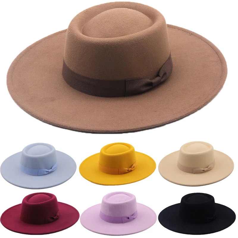 Женские осенне-зимние шляпы, однотонная Панама с широкими полями и ...
