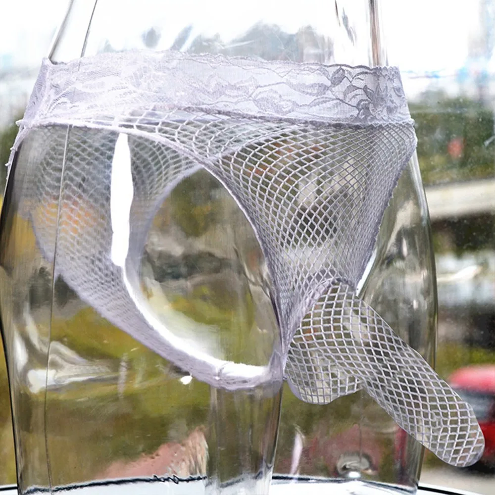 Мужские прозрачные треугольные трусы с перфорацией, шелковые кружев...