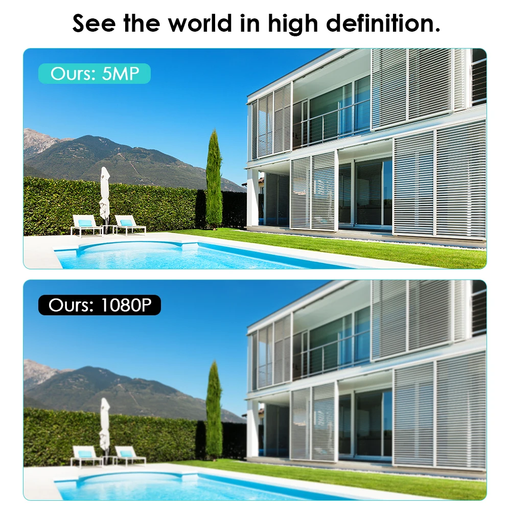 Камера имеет высокое разрешение 5 Мп и реальный 1080p full HD для опции. Смотрите более четкое видео, Обеспечивайте достаточную безопасность.