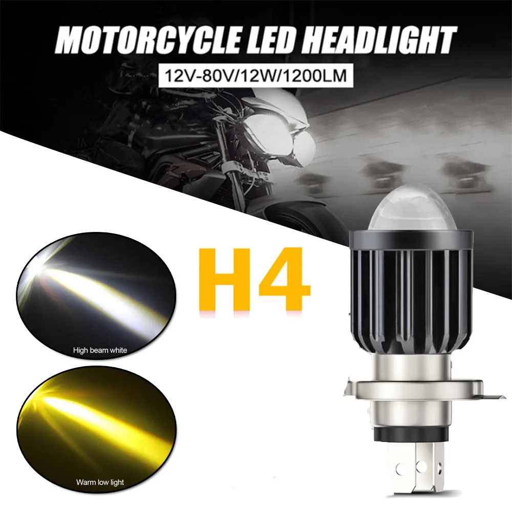 Двухцветные светодиодные лампы для мотоциклетных фар, 6000 лм, H4, 9-32 В постоянного тока, лампы для мотоциклетных фар, белые, желтые аксессуары, противотуманные фары