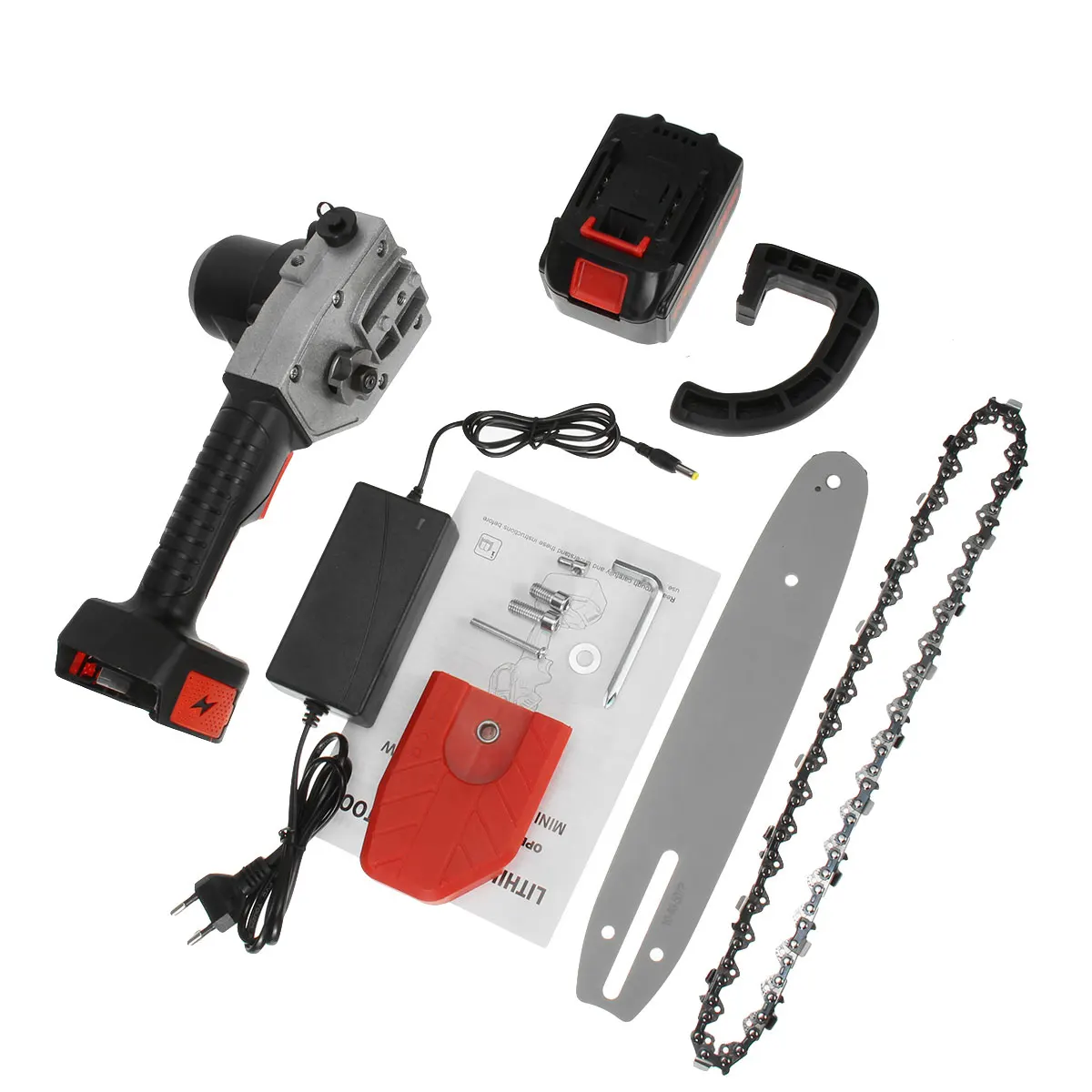 Особенности:-Эргономичная ручка, которая очень удобна и безопасна для переноски.-Безопасность пилы, эффективно повышает эффективность вашей работы.-- Цепи пилы были закалки, закалки и отжига. Он прочен, чем обычные цепи пилы.-Маленький размер, можно держать одной рукой.-- Светильник вес тела, светильник и удобный, светильник вес конструкции, долгое время хранения и не устают руки.-- Двигатель из чистой меди, сильная мощность, быстрая резка, повышение эффективности.-Практичная, быстрая скорость, низкое энергопотребление.-Переключатель отличного качества, быстрая и медленная регулировка, плавное изменение скорости.
