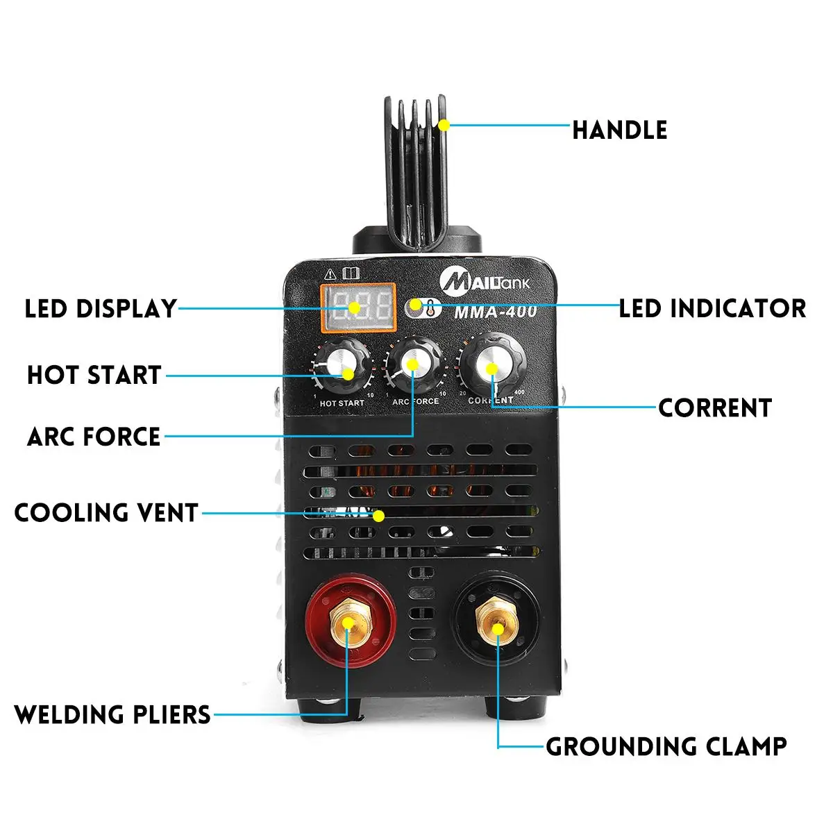 Наименование: MMA-400 сварочный аппарат с горячим пуском/дуговой силой 220 ВМодель: MMA-400Стиль: дуговая сваркаМатериал: металл + АБСЦвет: белыйВходное напряжение: 220VНоминальная частота: 50/60 ГцВыходной ток: 20-400AНапряжение без нагрузки: 60 вЭффективность: 80%Рабочий цикл: 60%Коэффициент мощности: 0,73Степень защиты: IP21SПрименяемая толщина палки: ≤ 4,0 ммФункция: Горячий старт, дуговая сила, коррентПрименяемый электрод: нержавеющая сталь, чугун и другие основные электроды с покрытиемМатериал: нержавеющая сталь, углеродистая сталь, железо, медь и другие цветные металлыОсобенности-Цифровой дисплей, позволяет регулировать выходной ток от 20 до 400A-Регулируемое управление силой дуги, предотвращает прилипание электрода во время сварки-Горячий запуск, увеличивает выходную амперацию при начале дуги, чтобы устранить прилипание электрода-Усовершенствованная IGBT инверторная технология, отличается отличной дуговой стабильностью и меньшим разбросом-Высокая эффективность сварки, 60% Рабочий цикл, обеспечивает длительную сваркуПрименениеПодходит для воздушных работ, полевых работ, интерьера, технического обслуживания и так далее.Примечание: Пожалуйста, подключите сварочный аппарат к правильному напряжению!Посылка в комплекте1 x Электрический сварочный аппарат1 x держатель электрода с кабелем1 x Заземляющий зажим с кабелем1 x Кисть1 х аксессуары1 х Руководство1 x коробка(Распределите адаптер в соответствии с вашей страной)