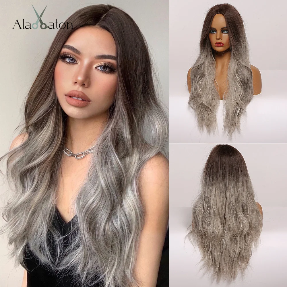 Длинный волнистый синтетический парик ALAN EATON с эффектом омбре, пепельно-коричневый, блонд, парики для женщин, средней части, для косплея, для вечерние, термостойкий