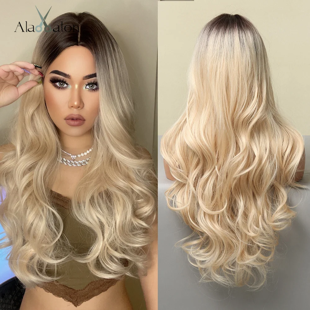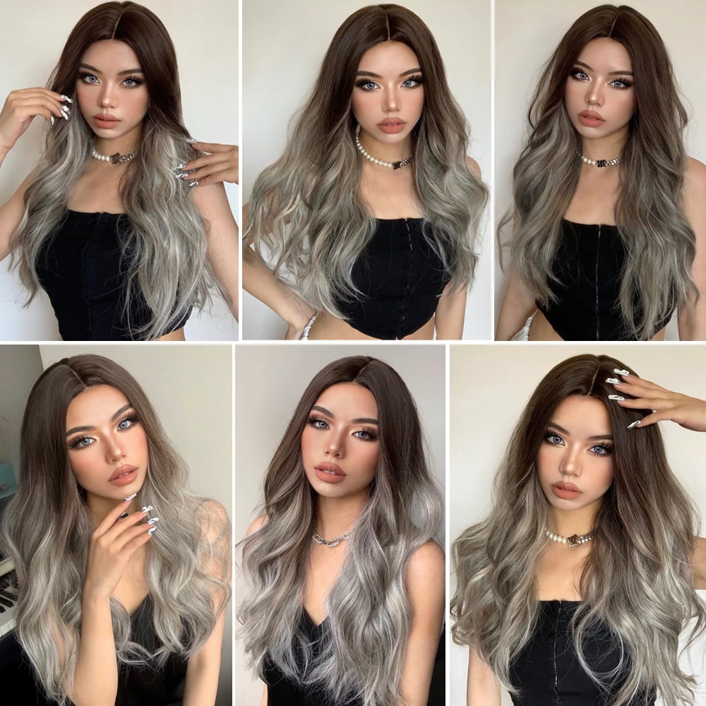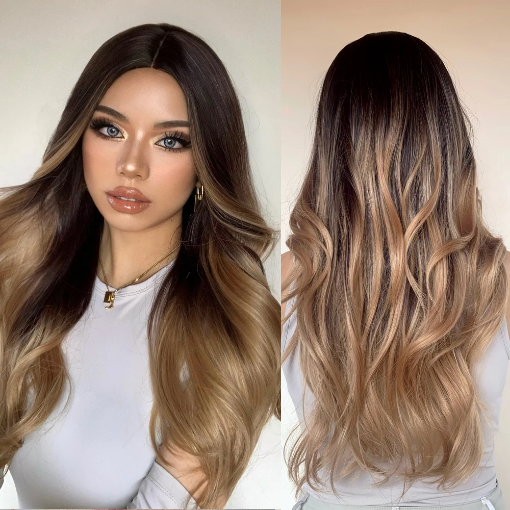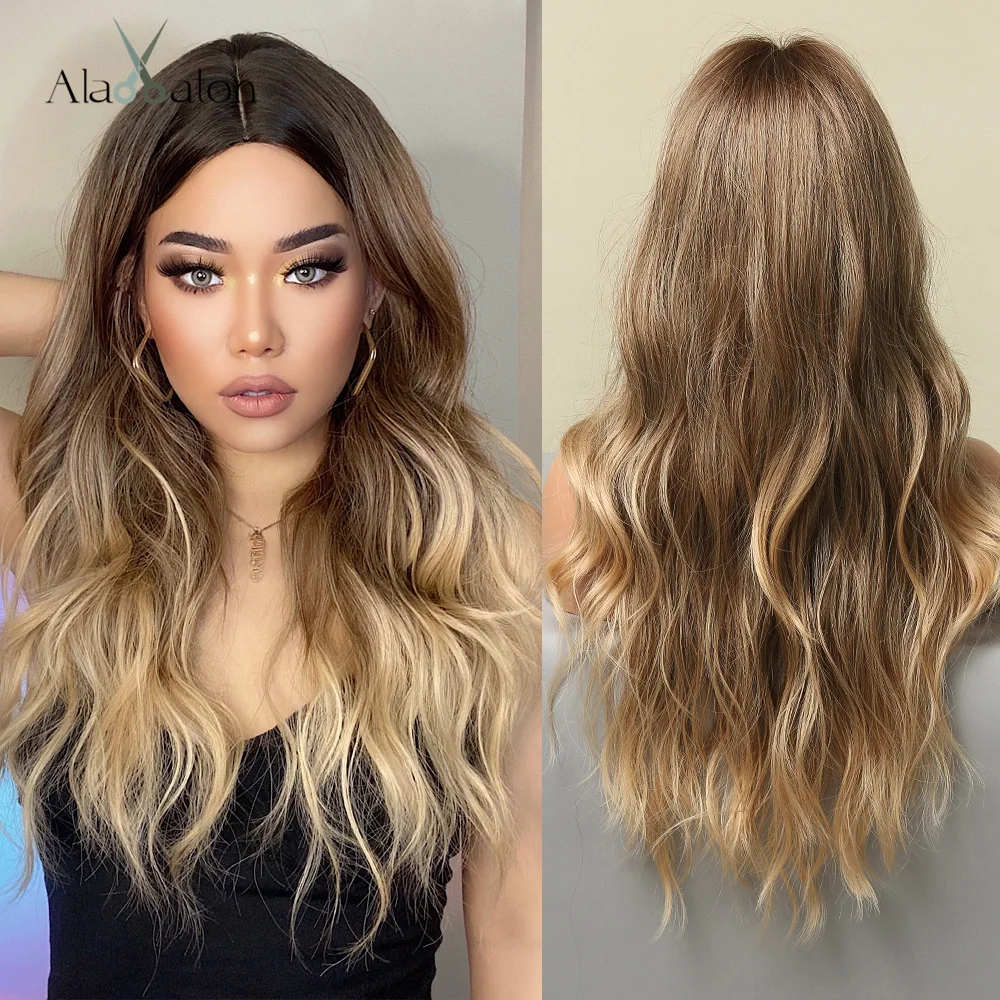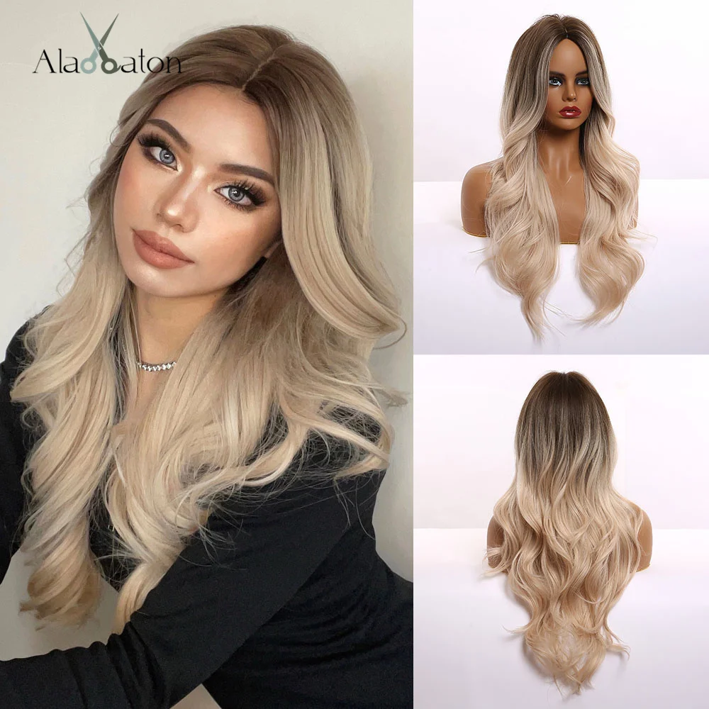 ALAN EATON Длинные свободные волнистые синтетические парики Омбре пепельно-коричневый блонд парики для женщин средняя часть косплей Повседневные Вечерние термостойкие