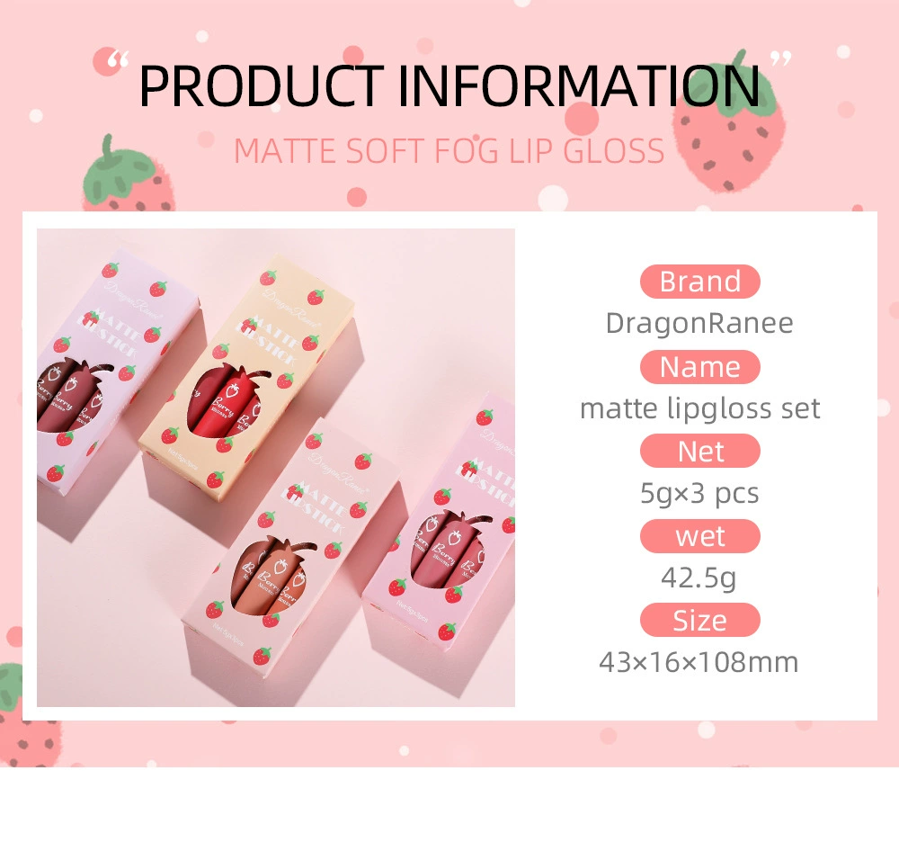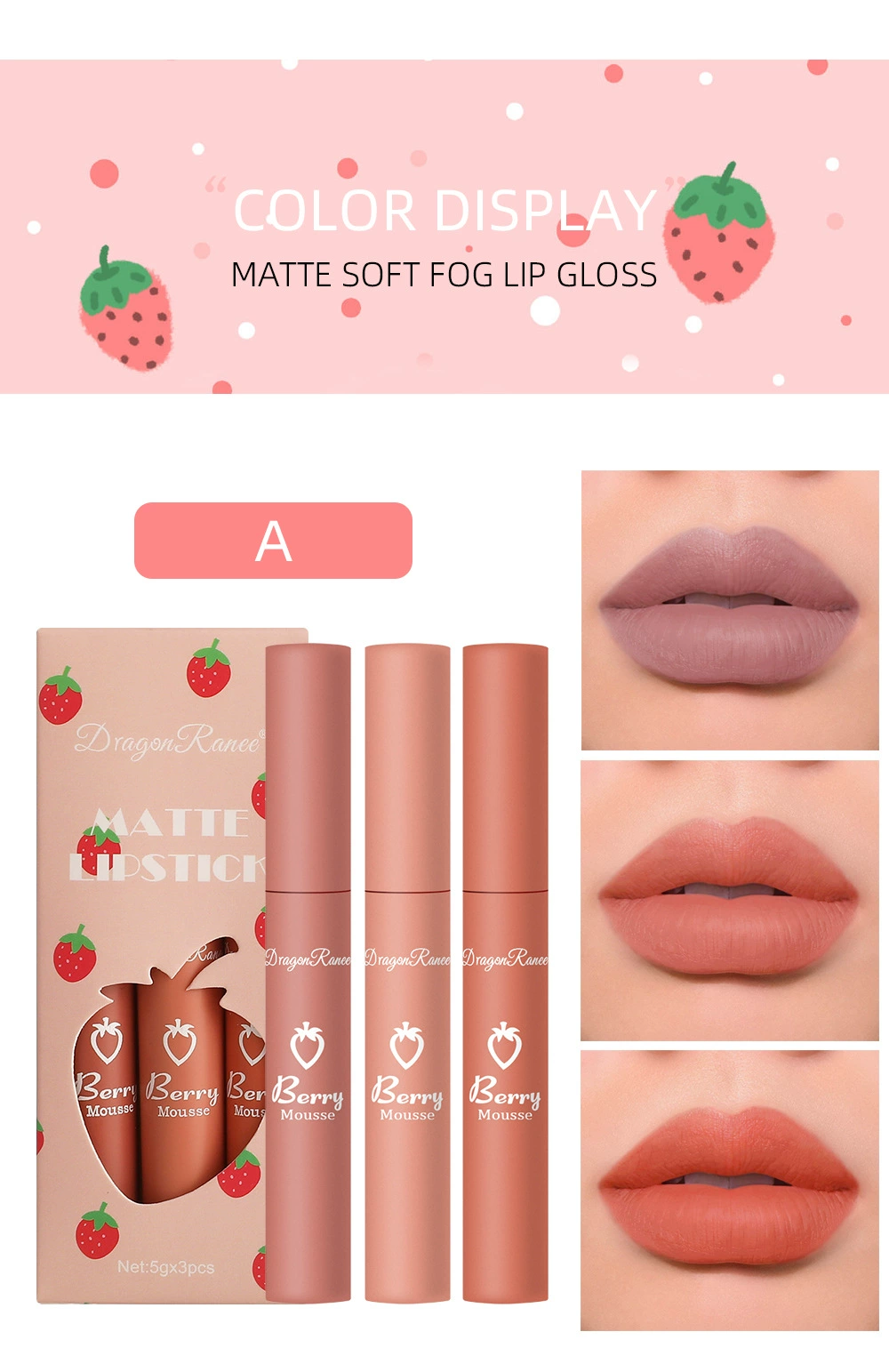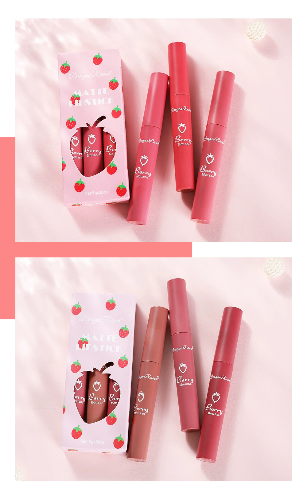 3 шт.компл. набор блесков для губ с милой клубничкой, водостойкая матовая губная помада с жидкостью, набор стойких нюдовых красных оттенков для губ, корейская косметика