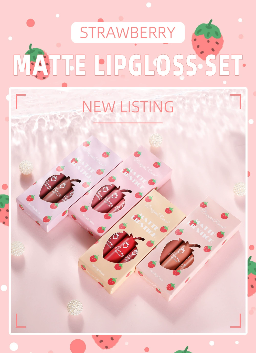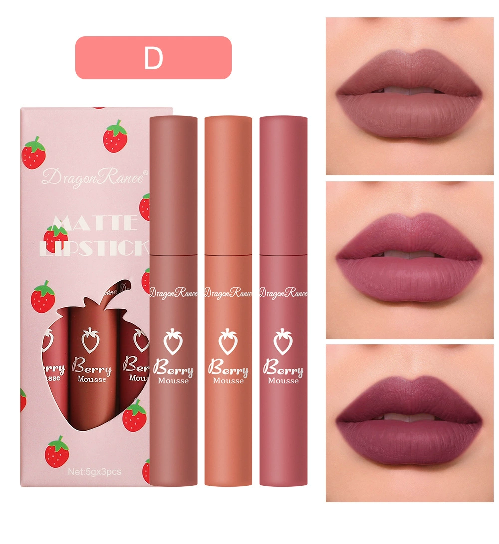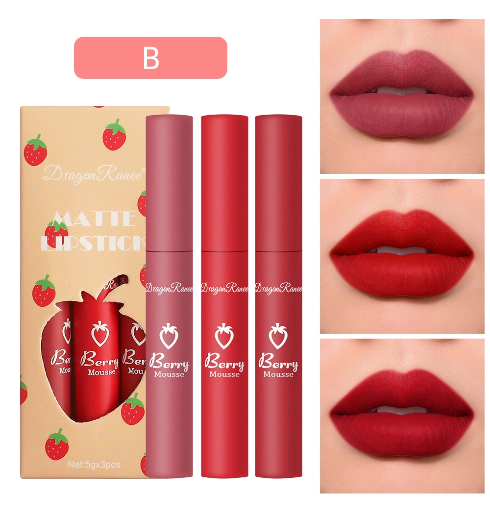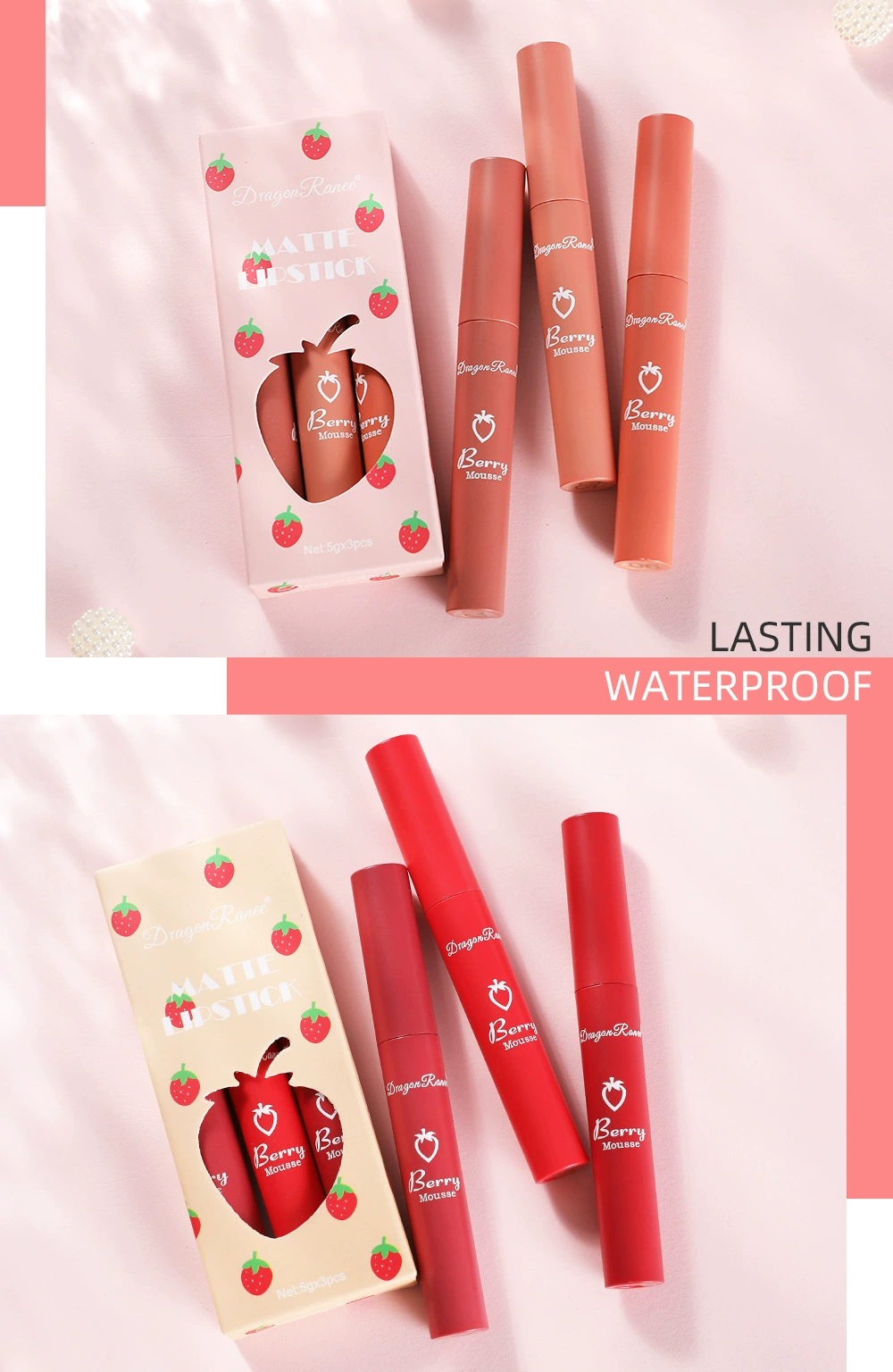 3 шт.компл. набор блесков для губ с милой клубничкой, водостойкая матовая губная помада с жидкостью, набор стойких нюдовых красных оттенков для губ, корейская косметика