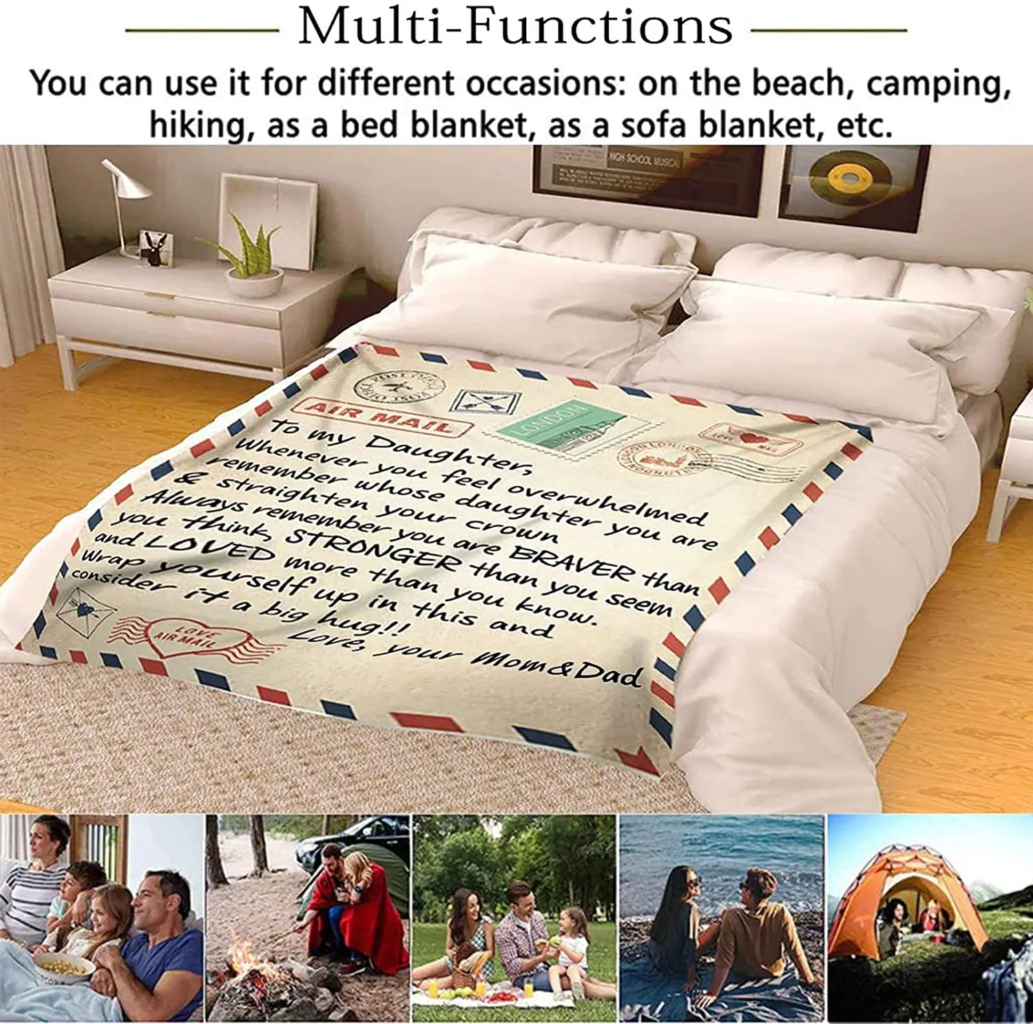 Фланелевое Одеяло для моей дочери с буквенным принтом, стеганые одеяла для папы, мамы и дочки, одеяло с воздушной почтой, положительный подарок на любовь