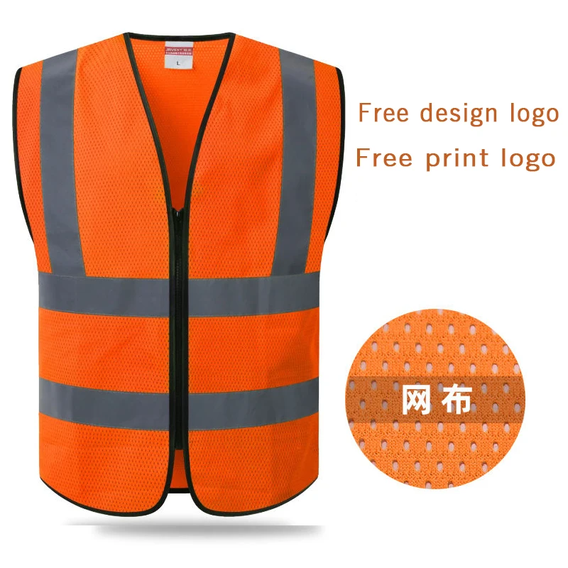 Сетчатый защитный жилет с логотипом на заказ, Светоотражающие Полоски 2 дюйма на молнии, уличный дорожный жилет для строительных работ оранжевого цвета