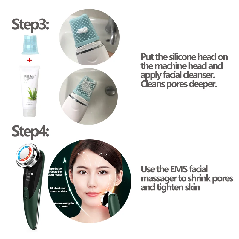 Ультразвуковой набор для скруббера кожи Вибрационный шпатель для лица для удаления угрей EMS светодиодный массажер для лица кавитационный пилинг для лифтинга лица