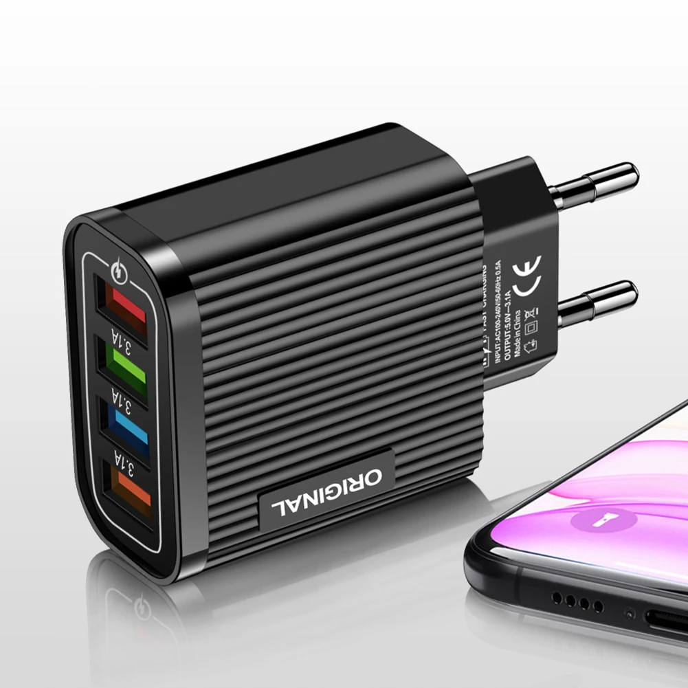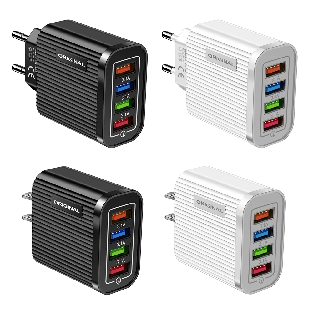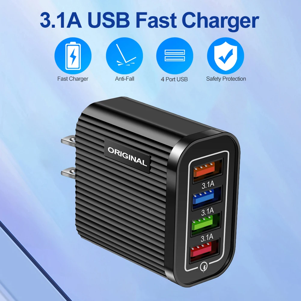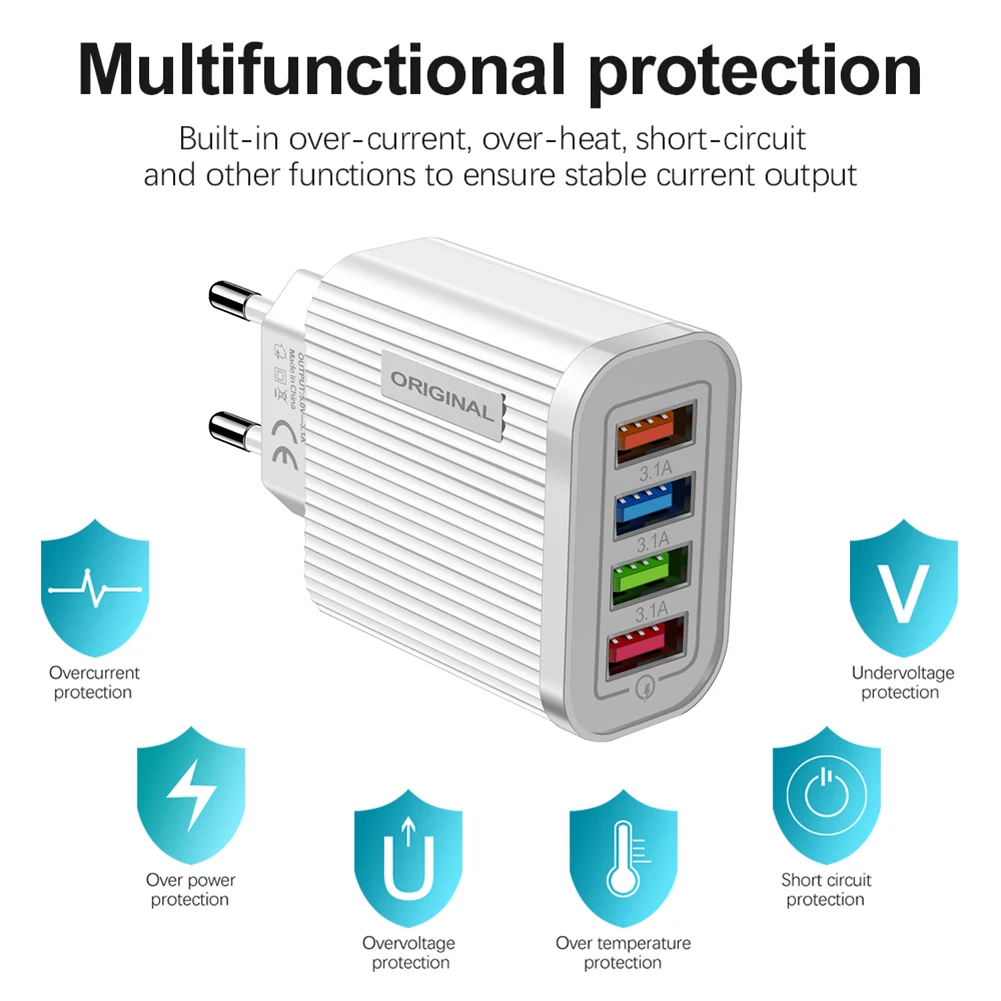 Портативное дорожное Сетевое зарядное устройство с 4 USB-портами, 3,1 А