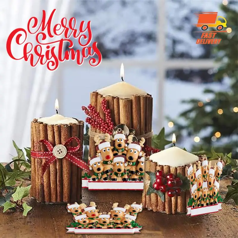 Рождественские украшения, персонализированное украшение для семьи оленей, подвеска на 2-8 человек, комбинированные милые Мультяшные деревянные детские подарки