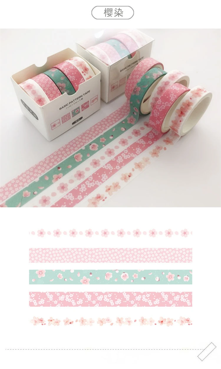Washi лента наклейка s Маскировочная лента 5 шт. набор Washitape 3 м японская Канцелярия кавайная Fita Adesiva Sakura декоративные наклейки в ассортименте