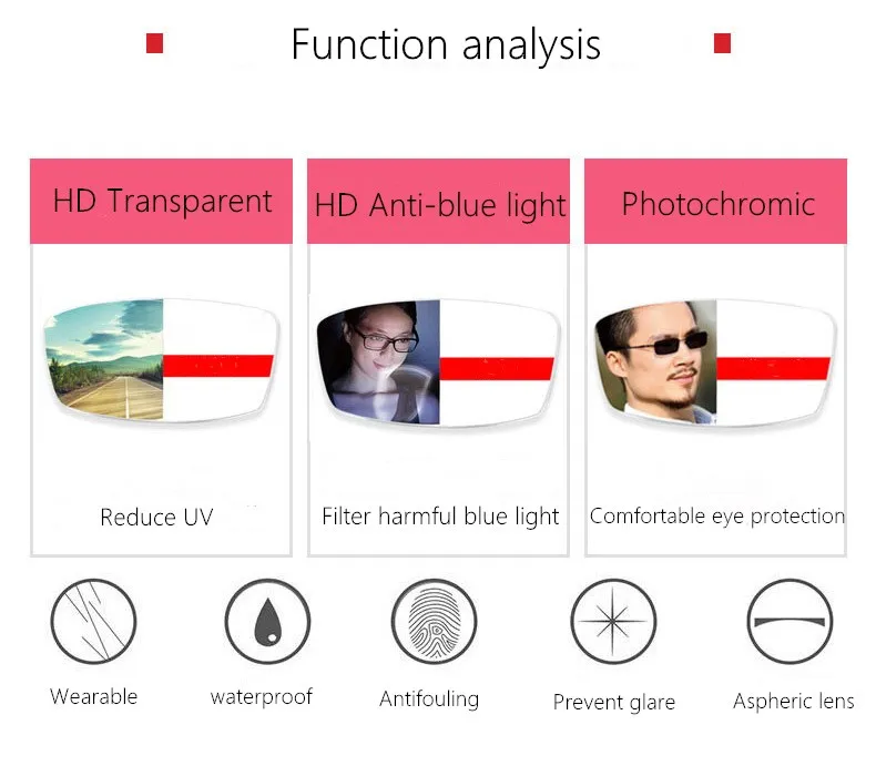 1,56 1,61 1,67 Линзы для очков с защитой от синего света и фотохромных линз оптические линзы по рецепту компьютерные линзы для чтения при близорукости и гиперметропии