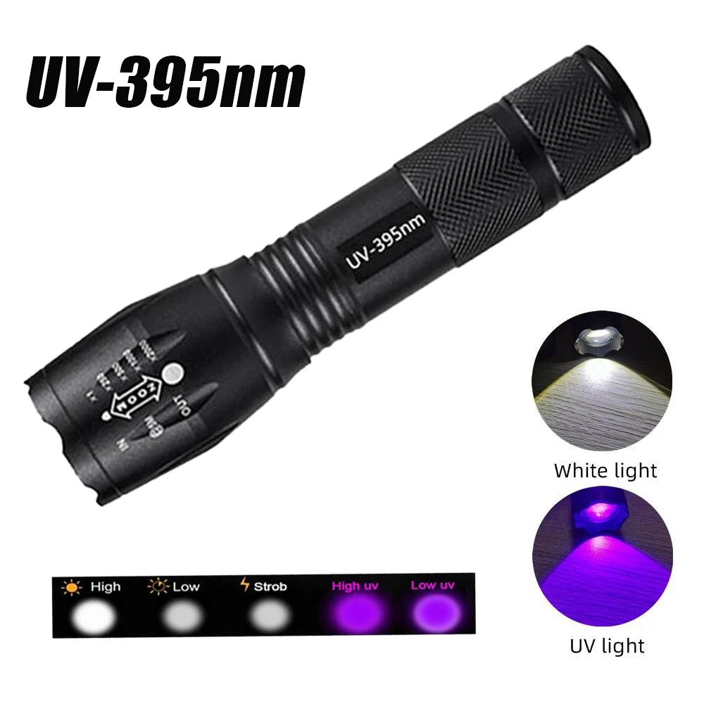 Светодиодный ультрафиолетовый фонарик 2 в 1, 395 нм, фонарик с зумом, фонарик, Ультрафиолетовый отверждаемый фонарь для кошек, домашних животных, скорпионов, денег, лампа для проверки