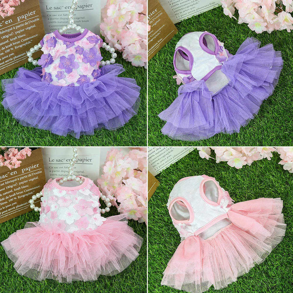 Кружевное шифоновое платье для маленькой собаки с цветами, модные вечерние платья на день рождения, свадебное платье с щенком, Летний милый костюм, одежда для домашних собак