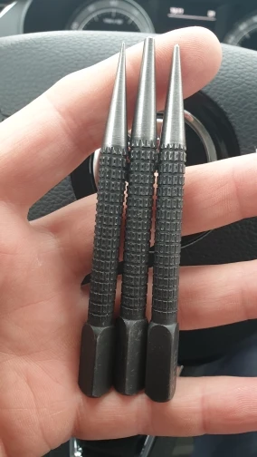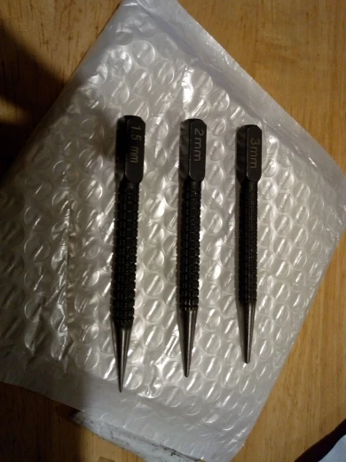 Тяжёлый, но не уверен в карбидном покрытии, оставляет очень маленькую точку. Разве что для дерева и мягких металлов пойдет