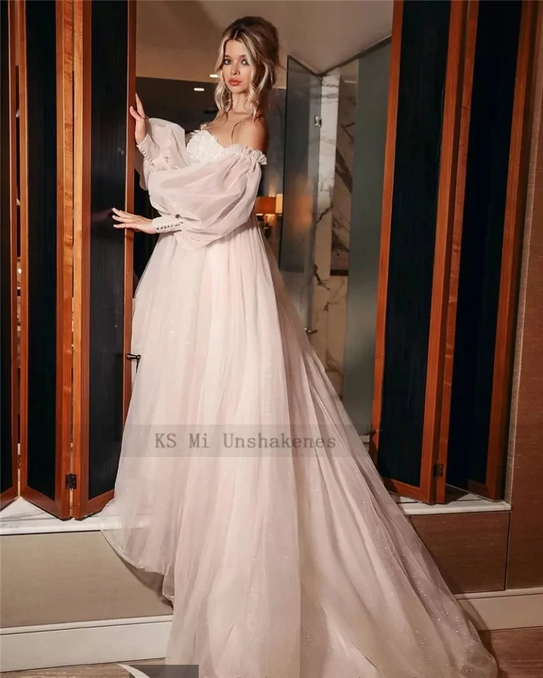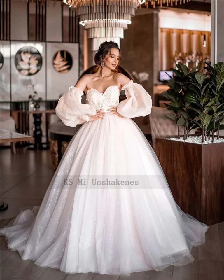 Пышное свадебное платье а-силуэт Свадебное платье 2022 рукава фонарики