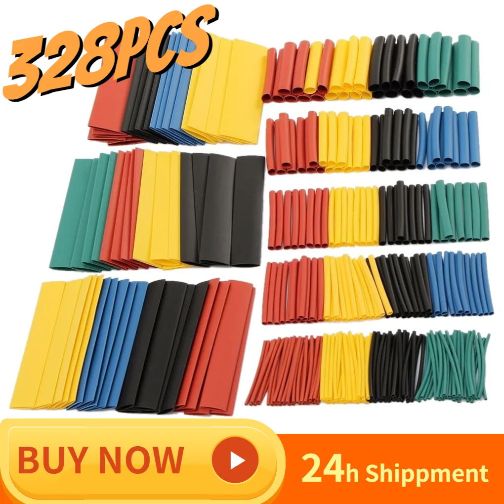 328 шт. 2:1 термоусадочные трубки, разнообразные электронные полиолефиновые трубки для проводов, комплект трубок