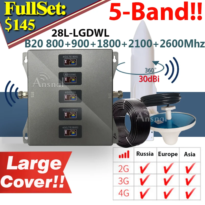 Лидер продаж! 5-полосный усилитель сотовой связи B20 800900180021002600 для сотовых телефонов 4G GSM ретранслятор 2g3g4g усилитель сигнала мобильных телефонов