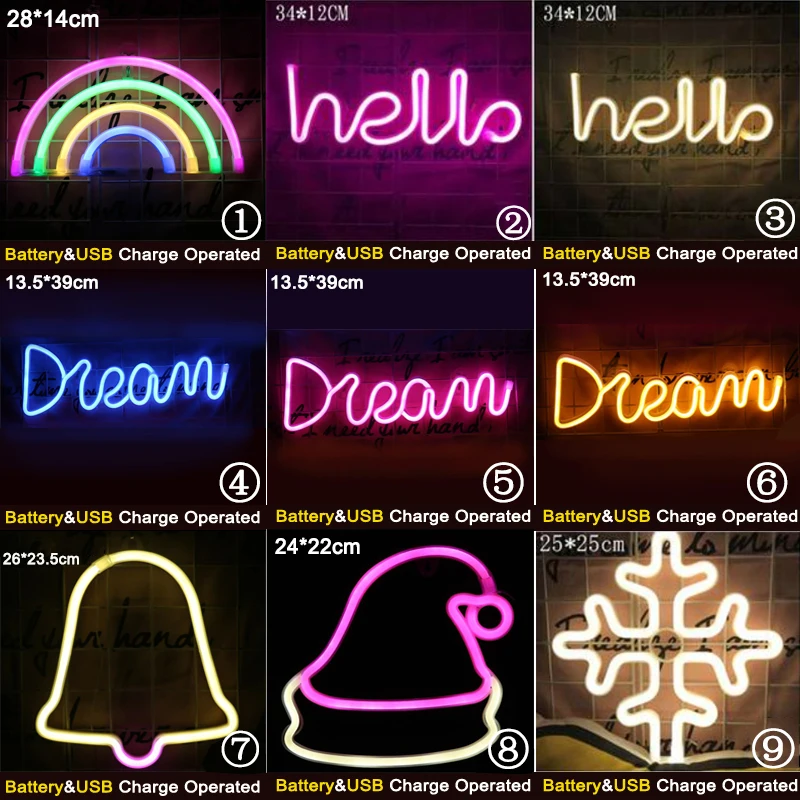 Светодиодный неоновый ночсветильник, настенный декоративный Ночной светильник с USB-разъемом, неоновая лампа для украшения дома, Рождества, дня рождения, свадьбы, вечеринки