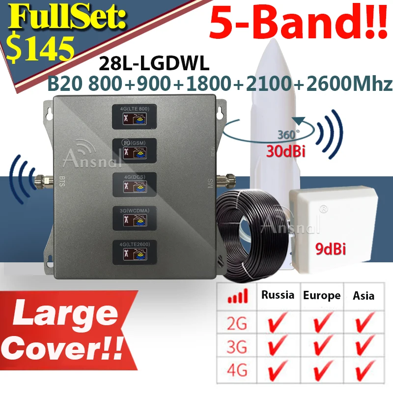 Большая распродажа! 5-полосный усилитель сотовой связи B20 800900180021002600 для сотовых телефонов 4G GSM ретранслятор 2g3g4g усилитель сигнала мобильных телефонов