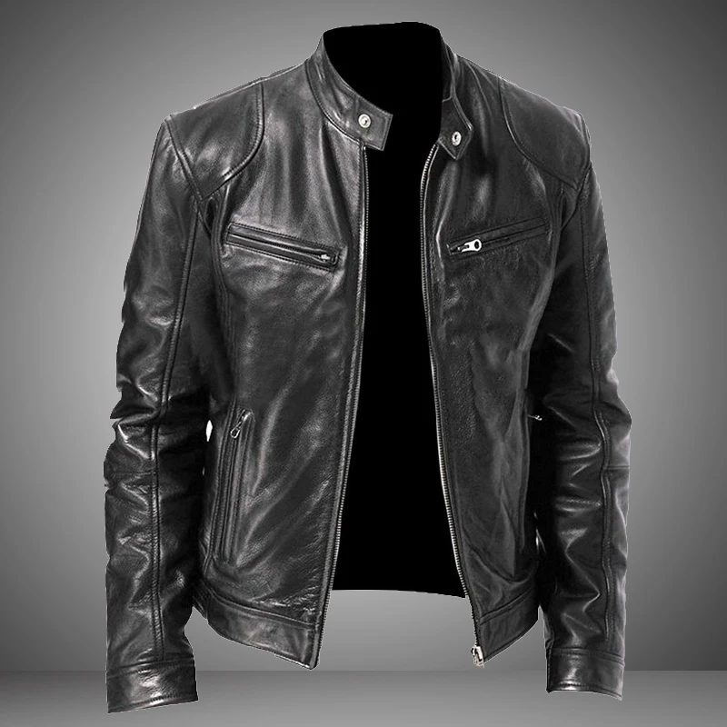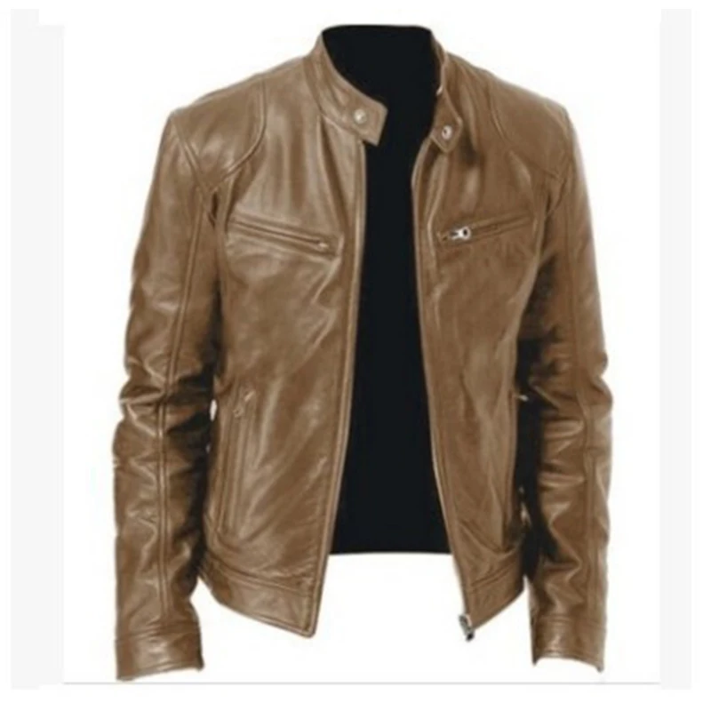 Мужские кожаные куртки, повседневная мотоциклетная кожаная куртка, ...