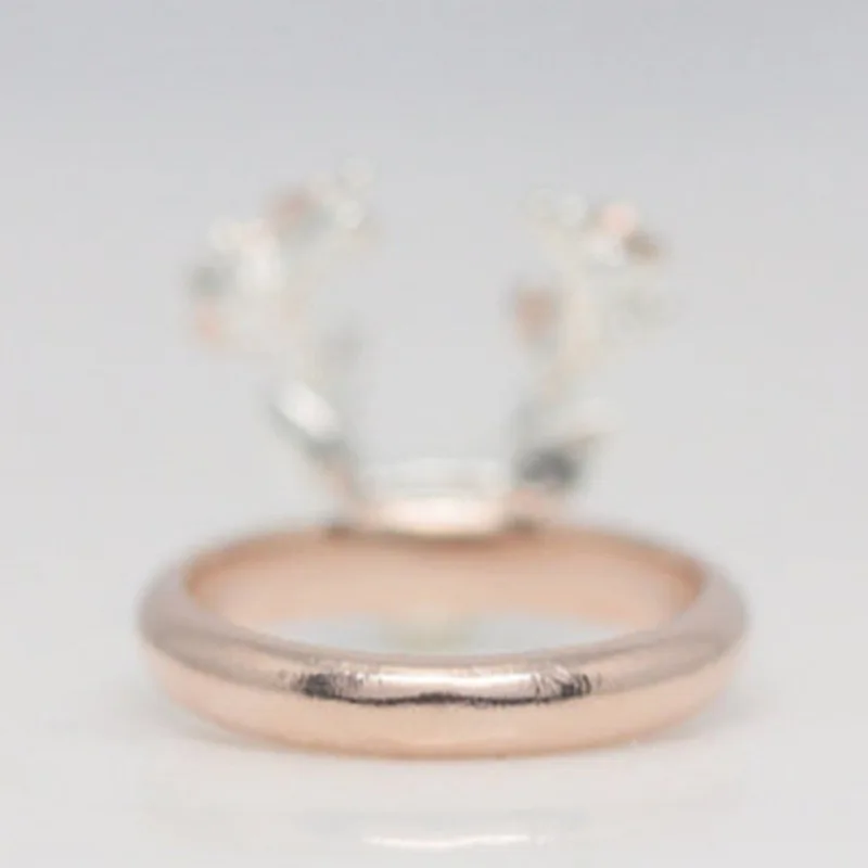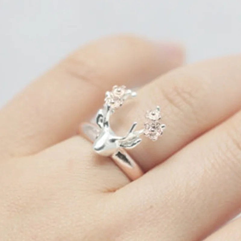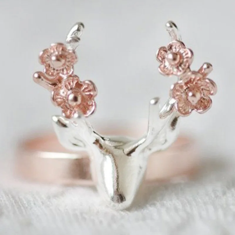 Модное серебряное кольцо с рогами, розовое и Золотое двухцветное кольцо с цветком и оленем для женщин на годовщину, Рождество