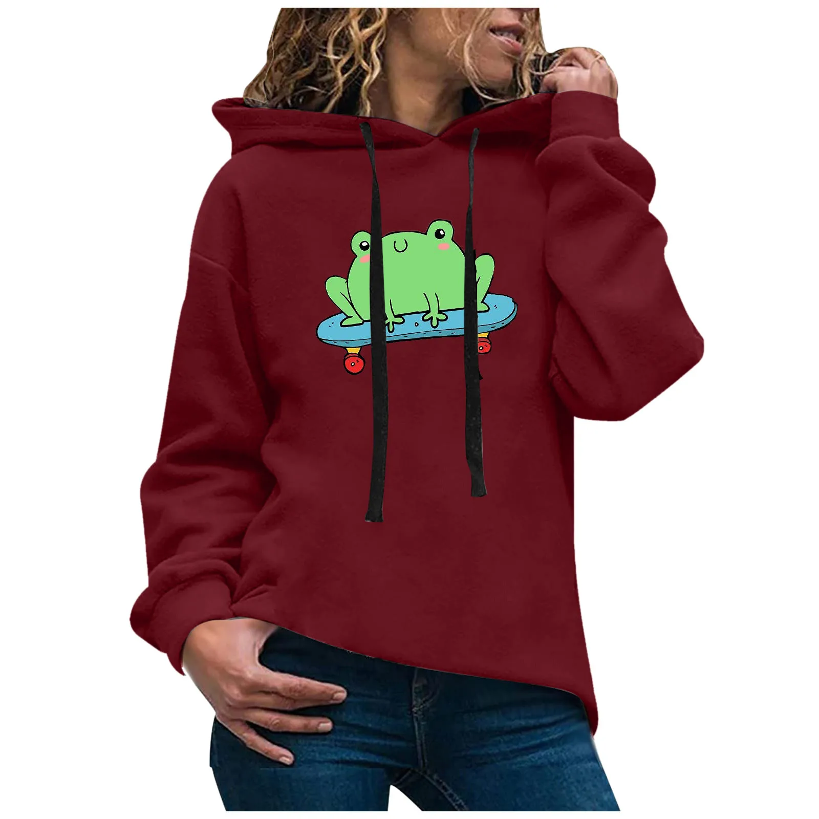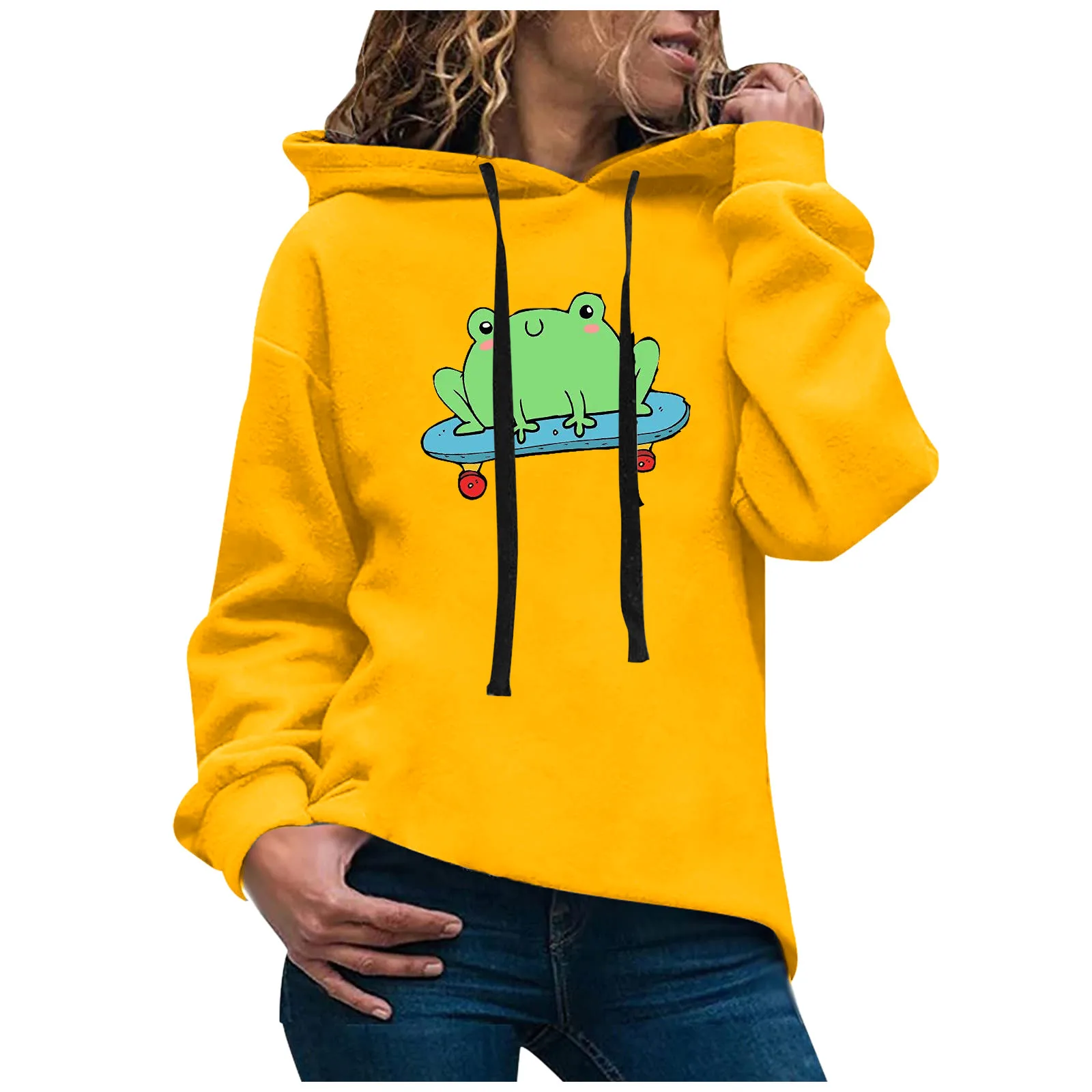 Толстовки с мультяшным принтом лягушек, модные худи, женские повсед...