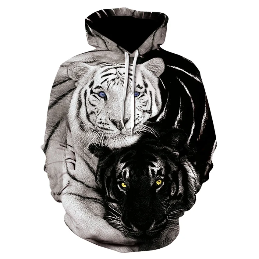 2021 черно-белые Толстовки С Рисунком Тигра и 3d-изображением живот...