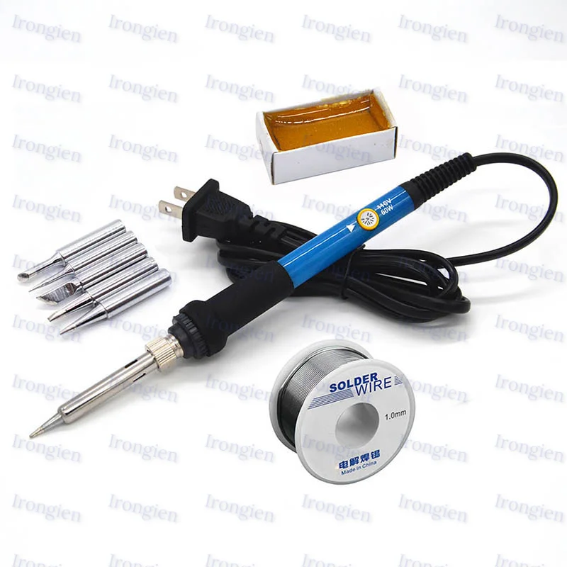 Электрический паяльник с вилкой EU/CN/US 220 В 110 В 60 Вт с регулируемой температурой сварочный пистолет ремонтный инструмент с оловянной проволокой 5 железными наконечниками