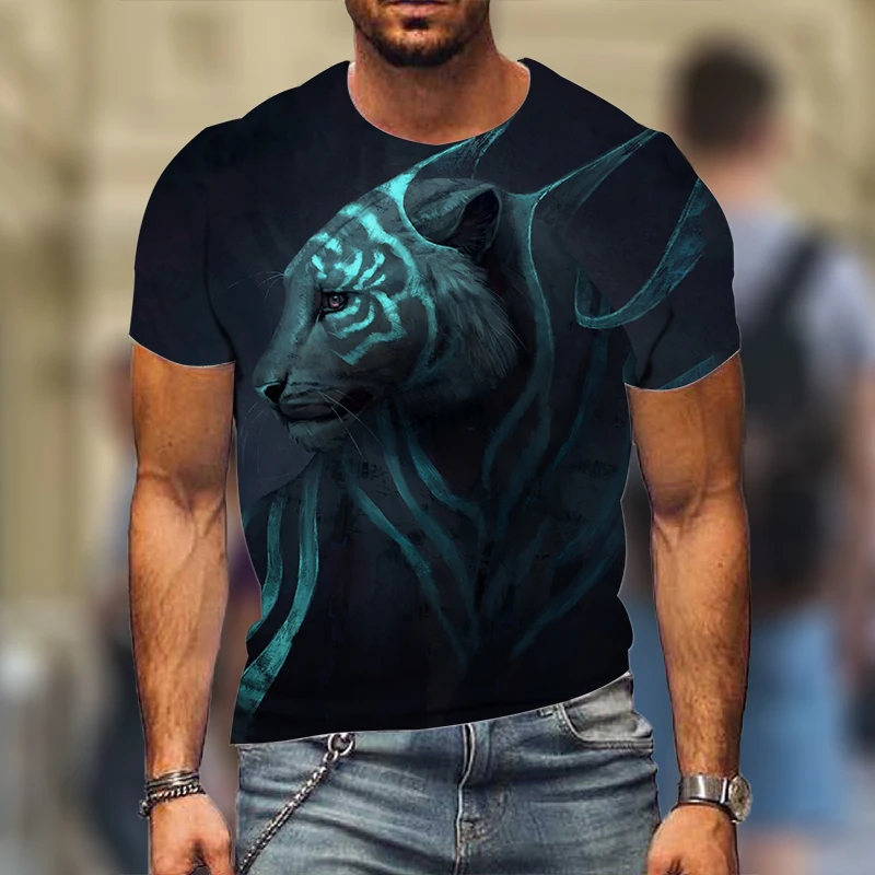 Повседневный Топ с круглым вырезом, 3D-печать, животное, тигр, мужская модель, крутая летняя уличная одежда в стиле хип-хоп для мужчин и женщин 2021